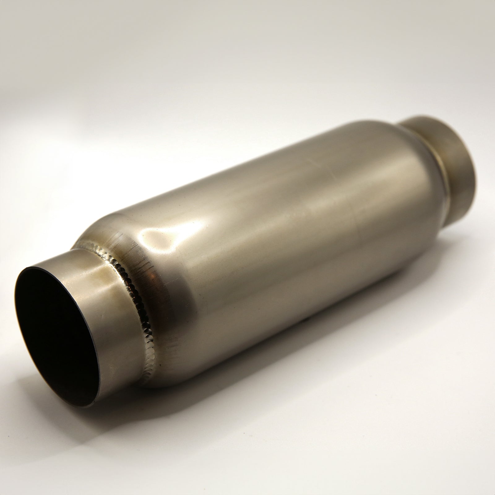 Our Ultra-Lightweight Race Resonator Mufflers are crafted from the industry's highest-grade titanium, delivering unparalleled quality and performance. Engineered by TitanFlow, these resonator mufflers are the ultimate choice for racers seeking the lightest and most reliable solution—proven to excel in competitions worldwide. Our Race Resonator Mufflers are available with two core options to suit your needs. Perforated core resonators maintain unrestricted flow, ensuring maximum performance, while louvered core resonators reduce flow by approximately 5-10% but provide better sound suppression.